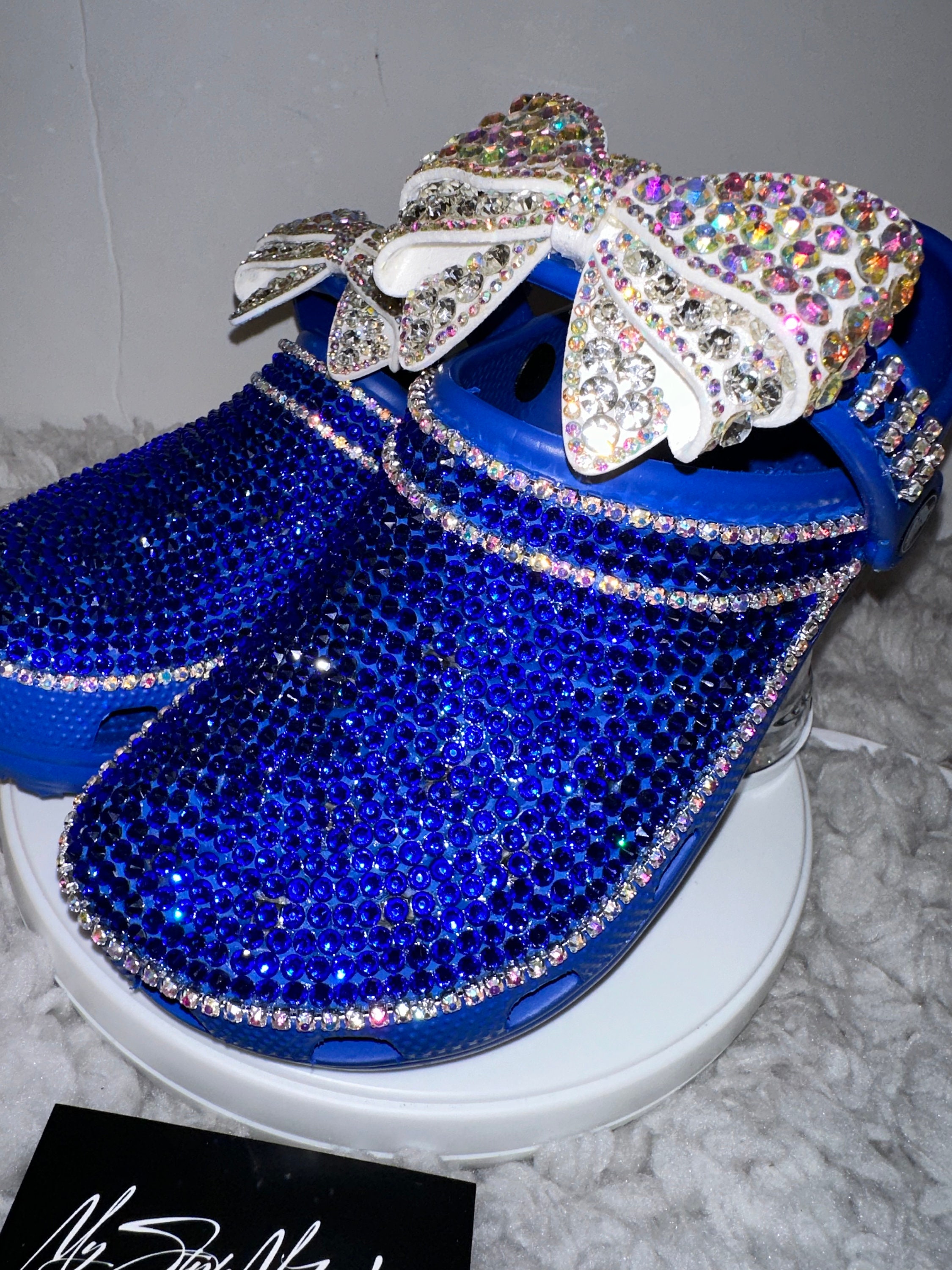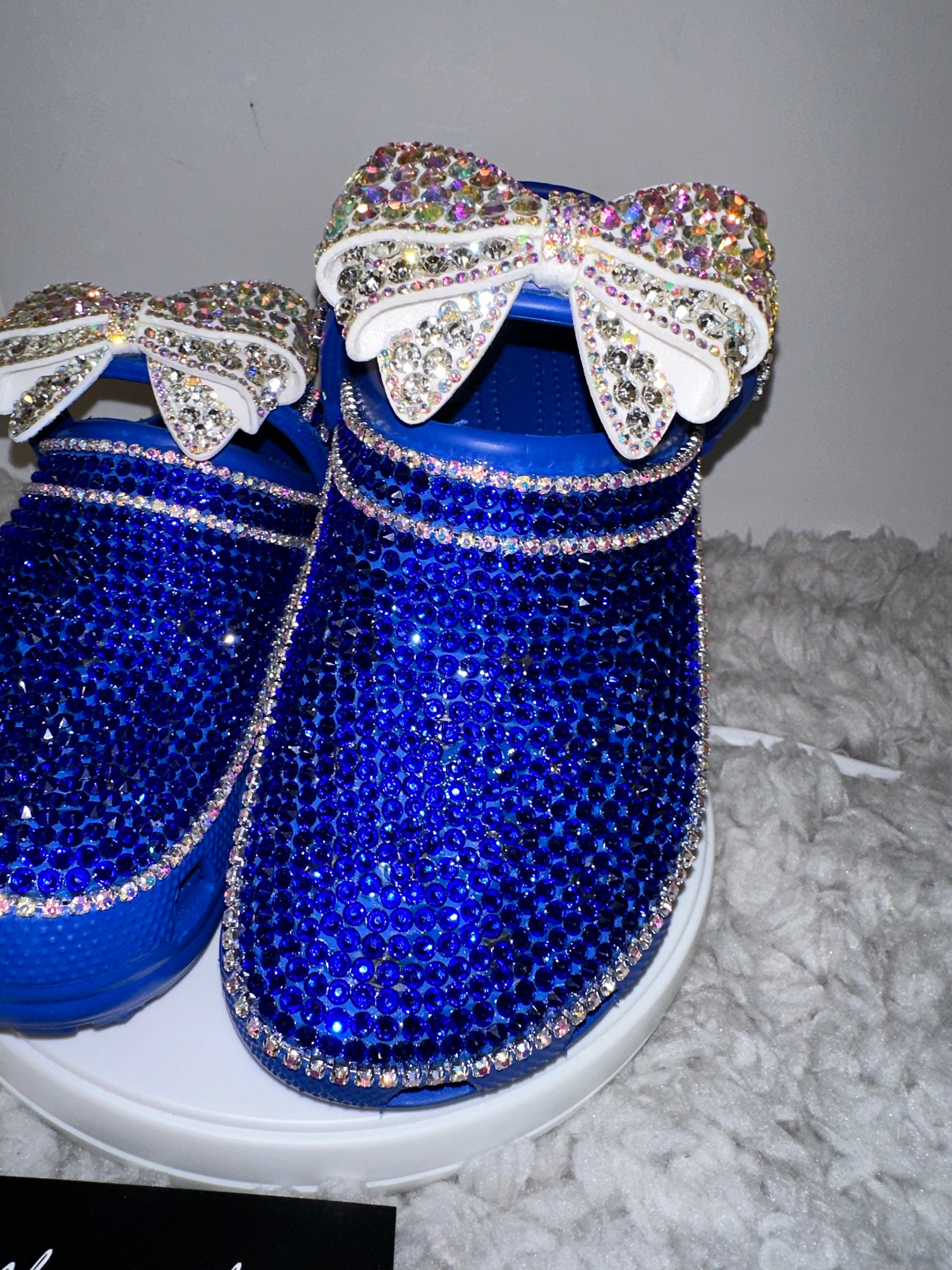 My Handmade Blue Rhinestone White Bow Custom Clogs for My Style | Birthday Gifts For her | Anniversary Gifts| Custom Bling Shoes