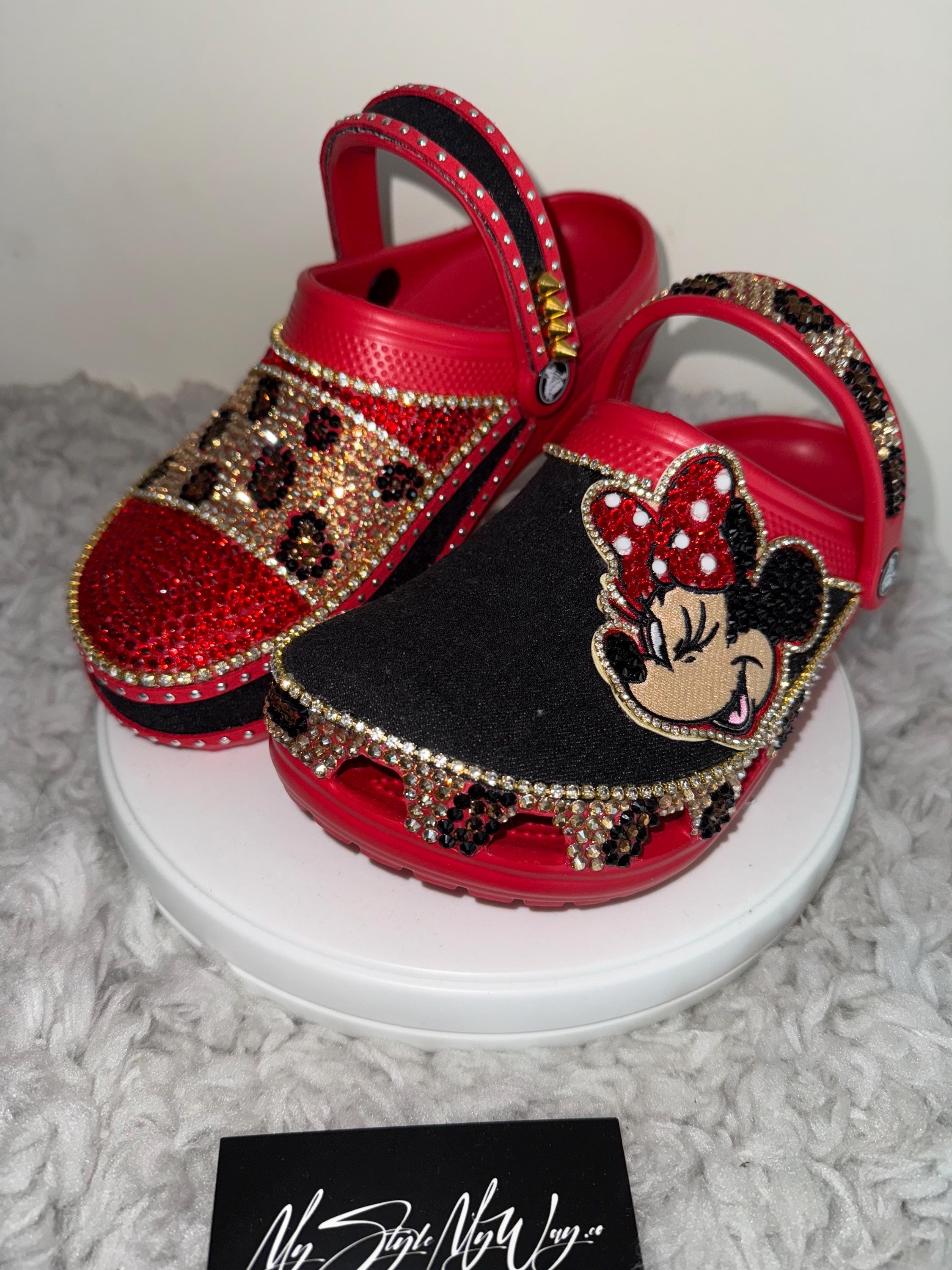 My Handmade Personalized Red Custom Clogs for My Style | Birthday Gifts For her | Anniversary Gifts| Push Gifts | Custom Cheetah Bling Shoes