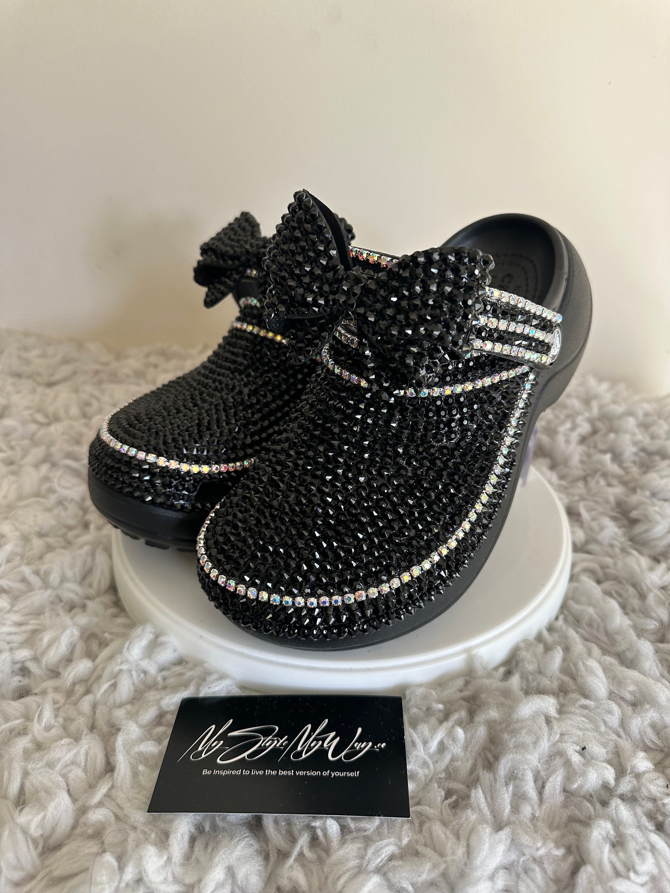 My Handmade Black Rhinestone Black Bow Custom Platform Clogs for My Style | Birthday Gifts For her | Anniversary Gifts| Custom Bling Shoes