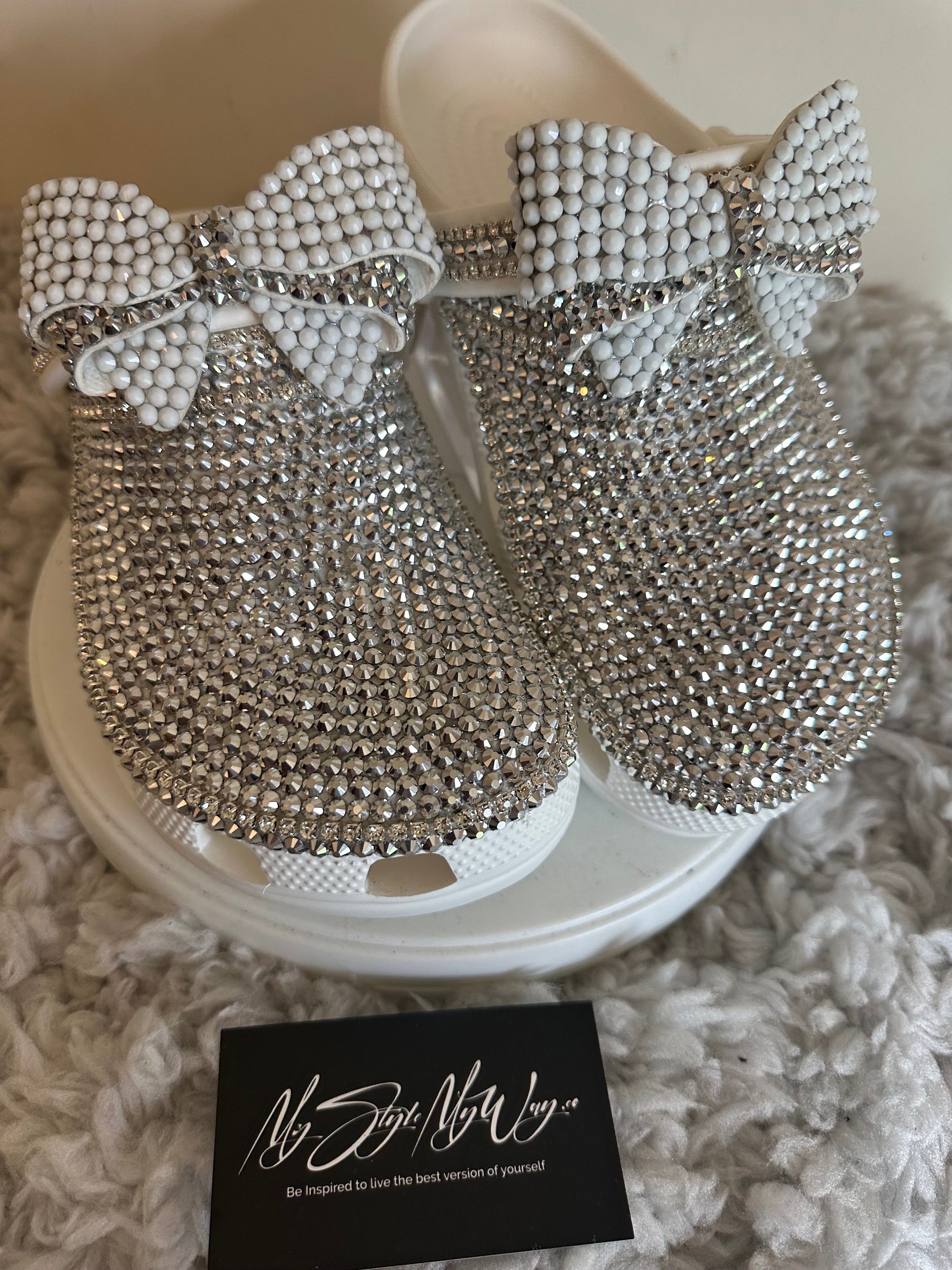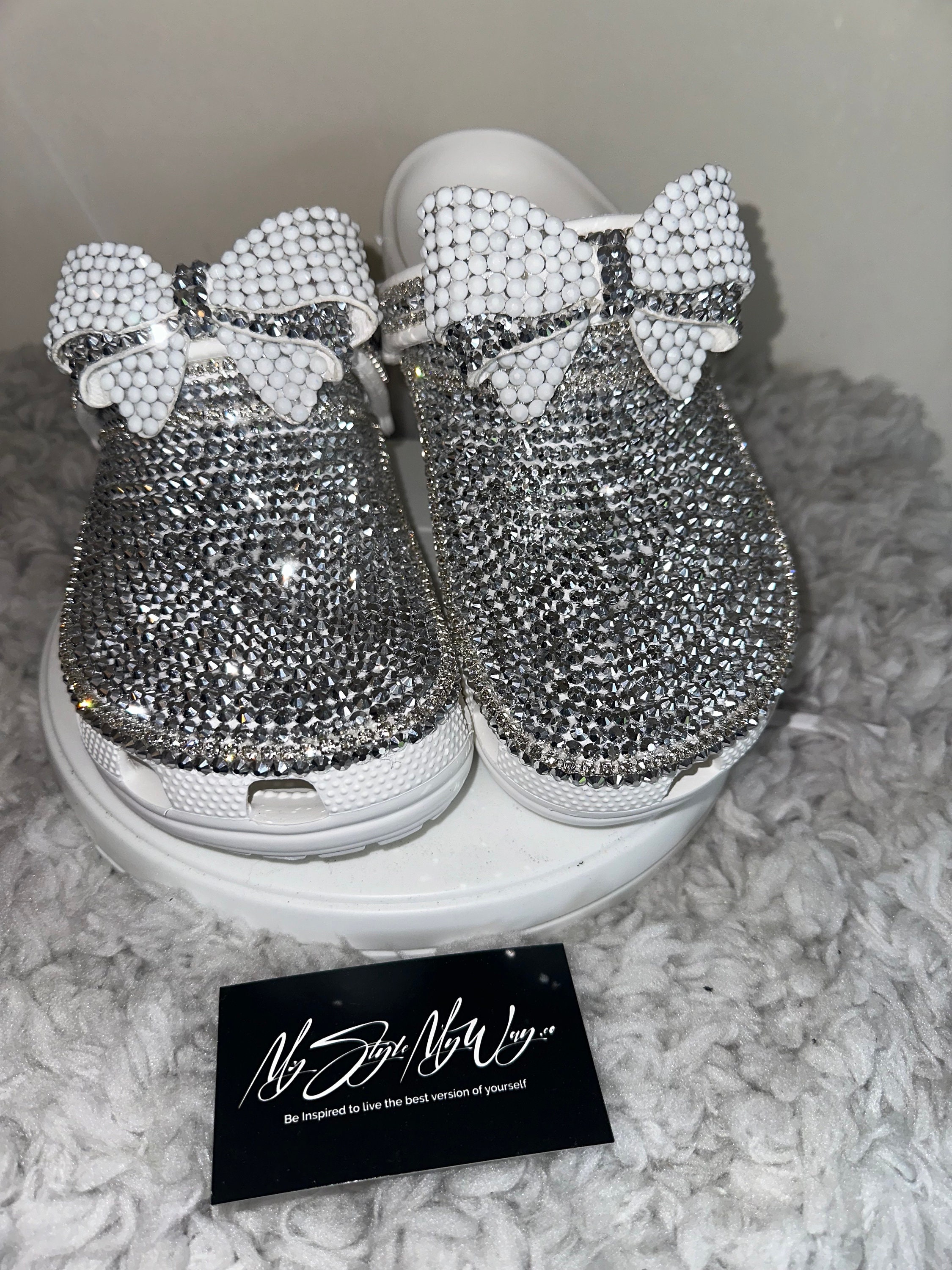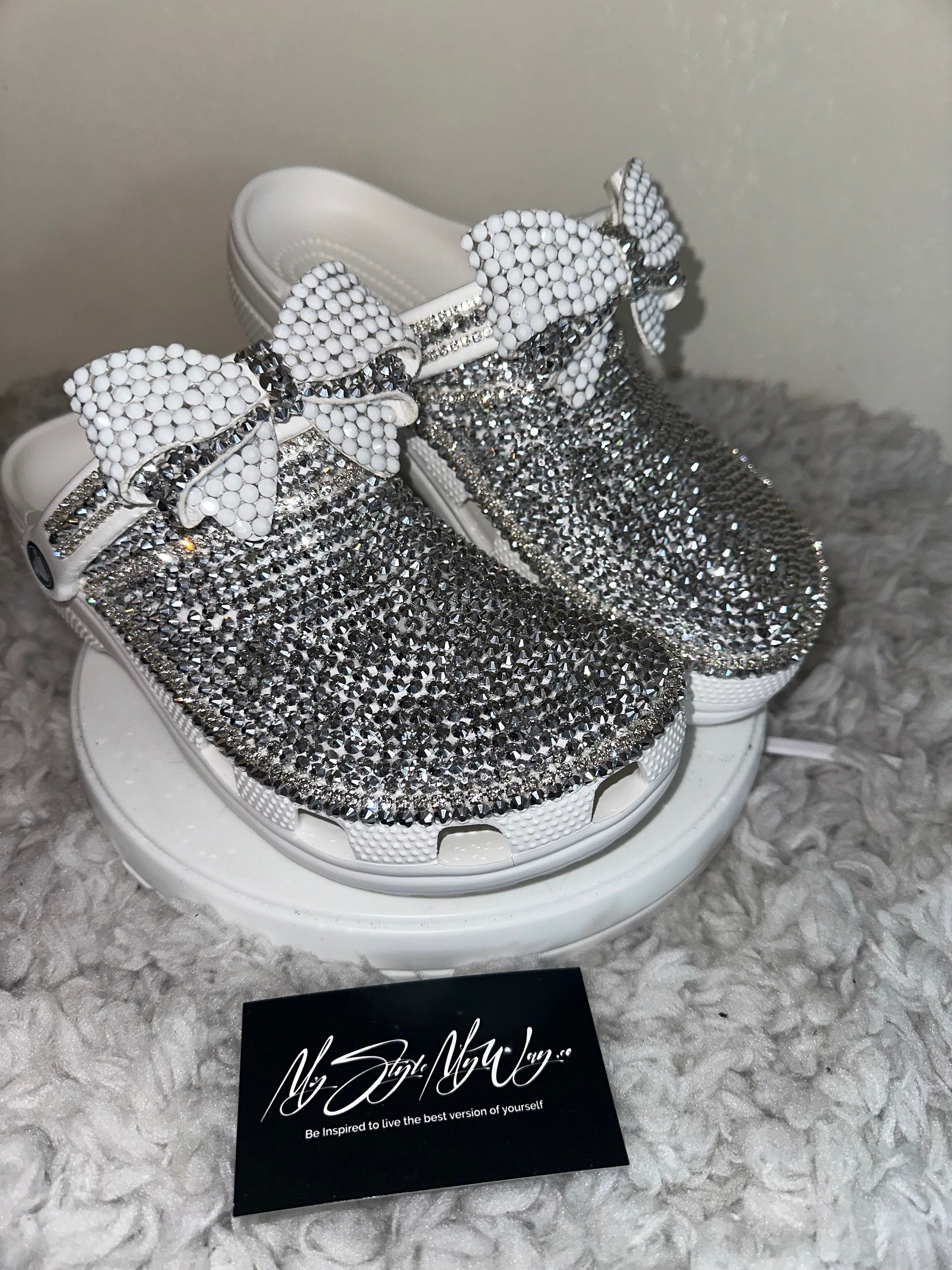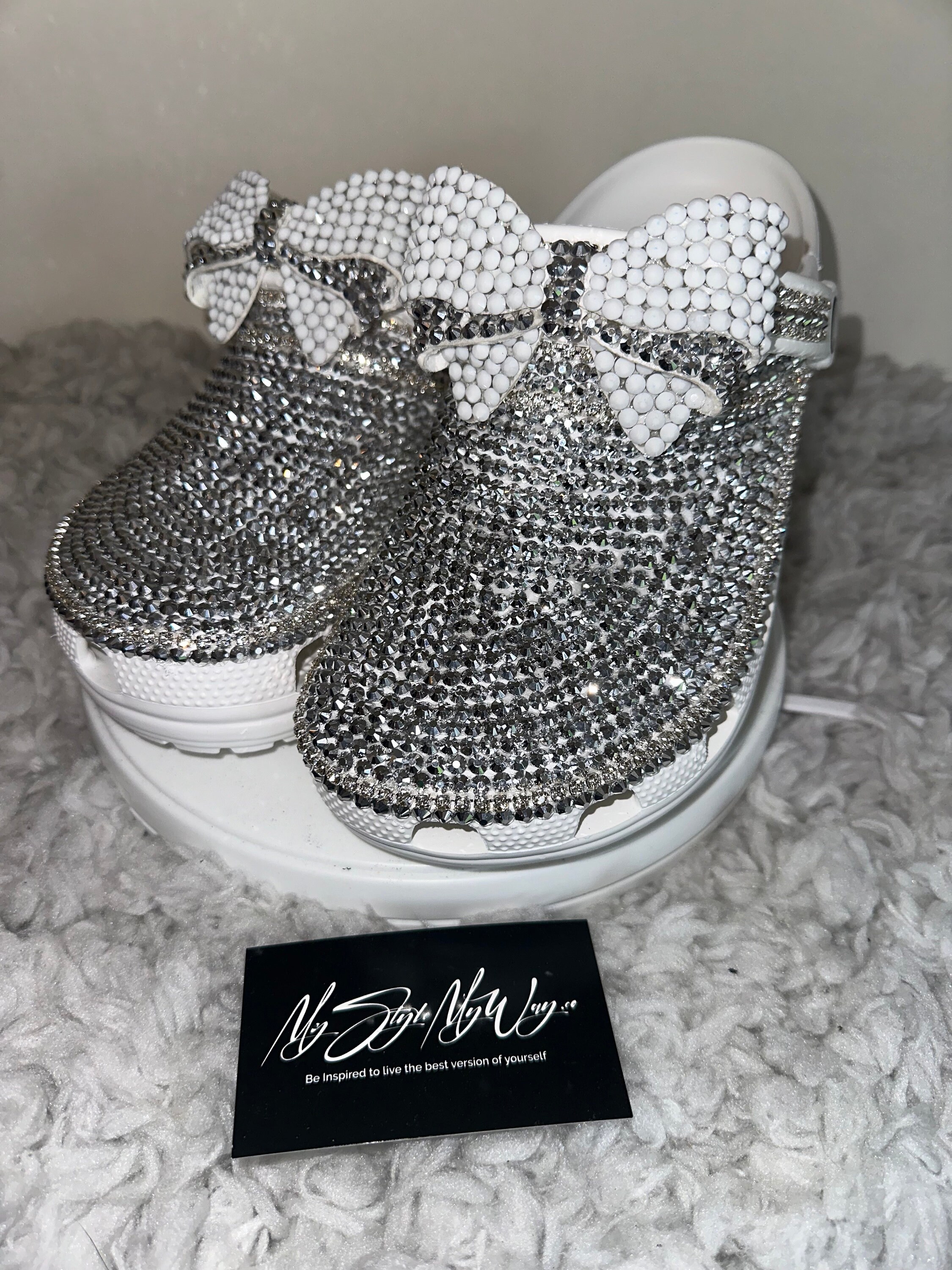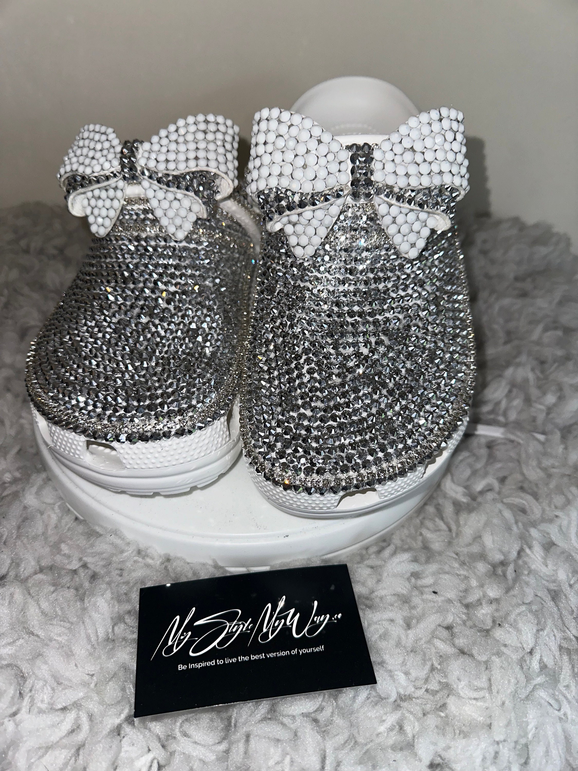 Elevate your everyday comfort with a touch of glamour! MyStyleMyWay's custom shoes are one-of-a-kind piece, meticulously handcrafted with hundreds of high-quality, brilliant glass rhinestones. Perfect for adding sparkle to a casual outfit, a special event, or just making your day a little brighter. We carefully place each rhinestone by hand to ensure a stunning, long-lasting shimmer.