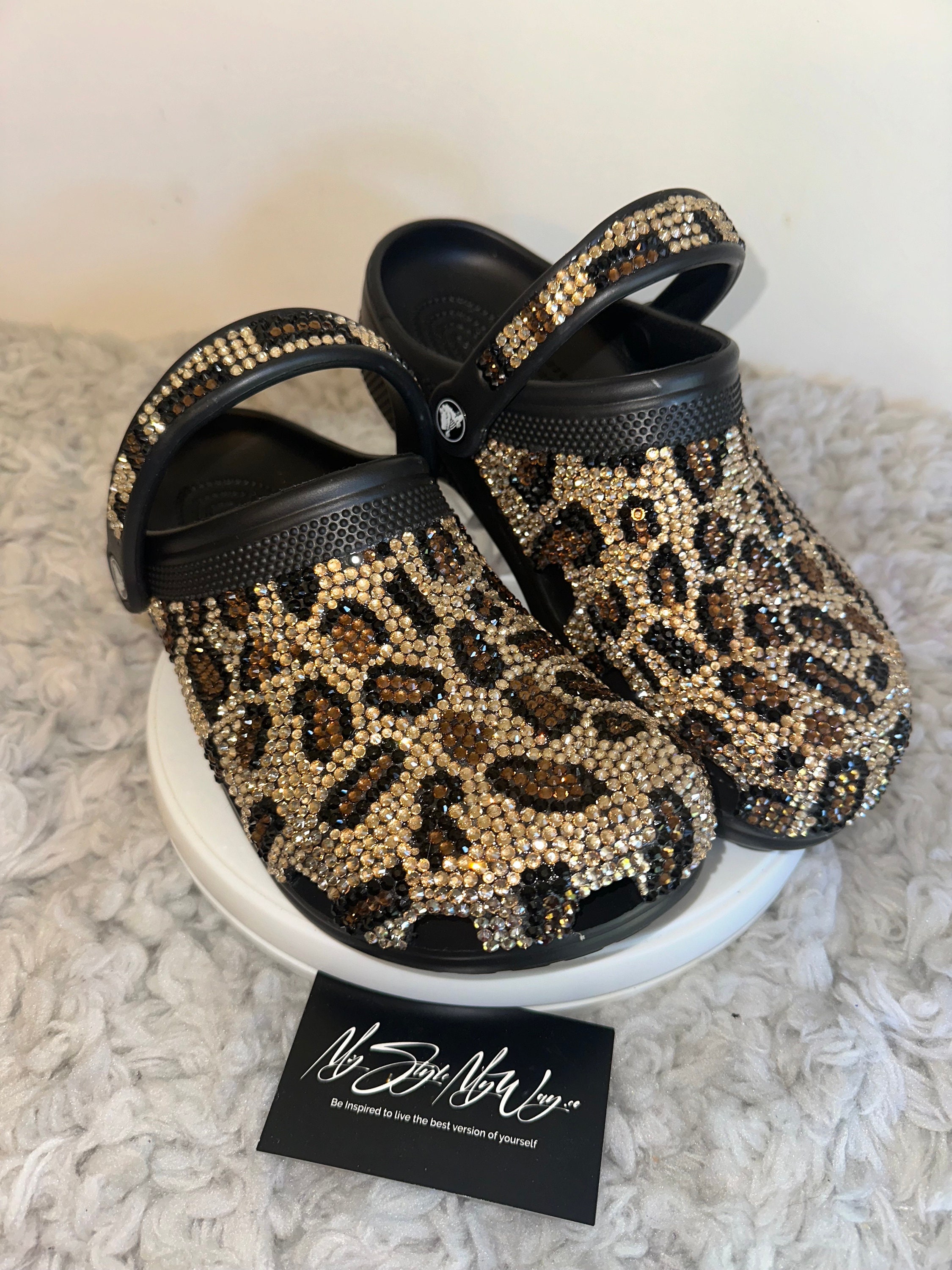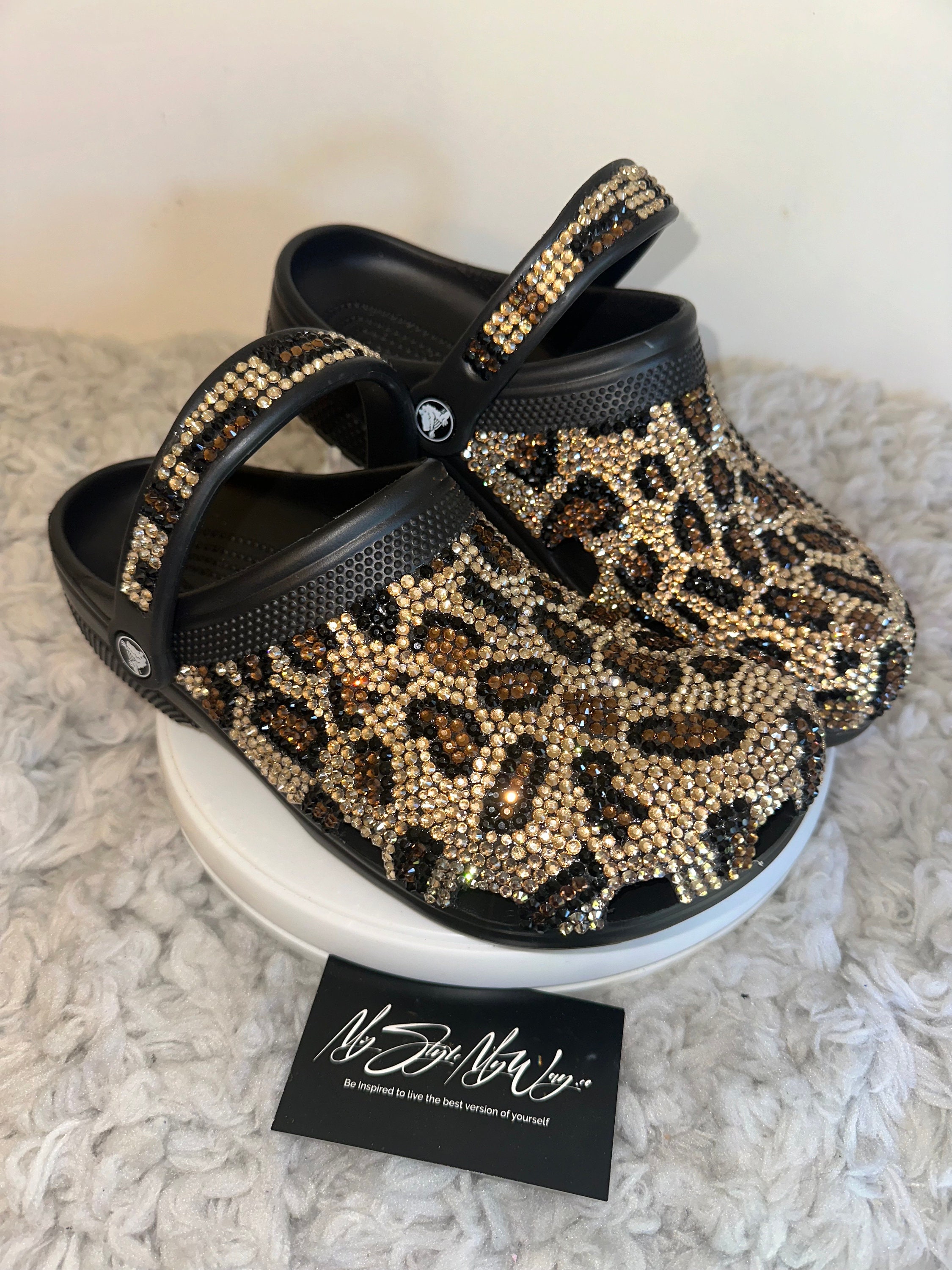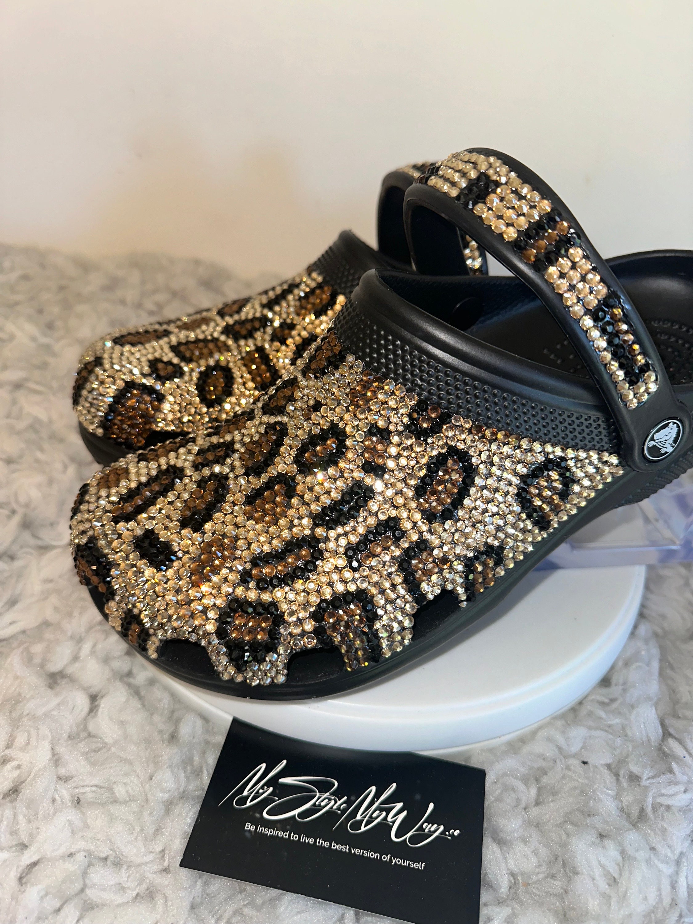 My Handmade Cheetah Rhinestone Custom Clogs for My Style | Birthday Gifts For her | Custom Bling Shoes | Anniversary Gifts