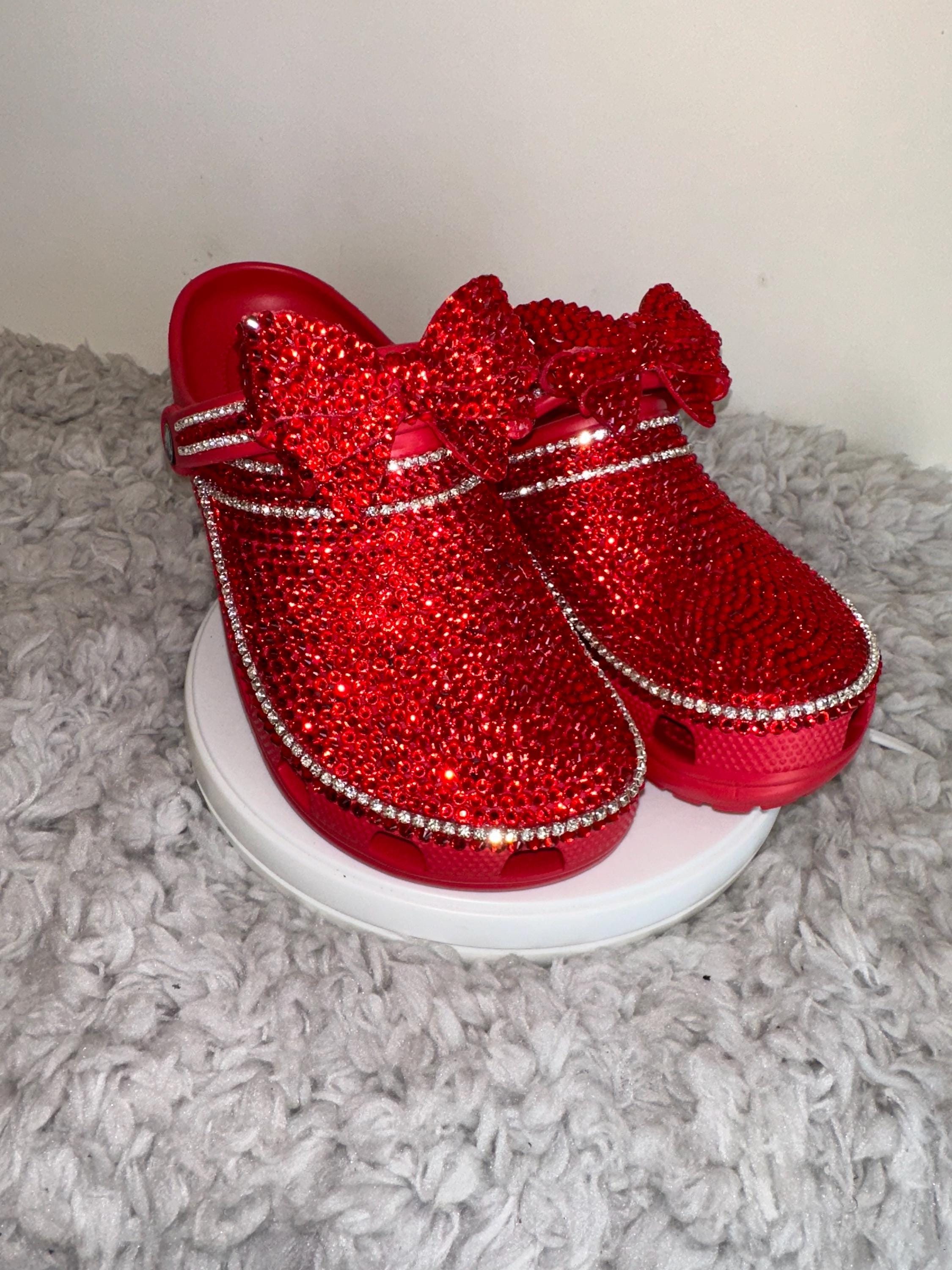 My Handmade Red Rhinestone Bow Custom Clogs for My Style | Birthday Gifts For her | Anniversary Gifts| Push Gifts | Custom Bling Shoes