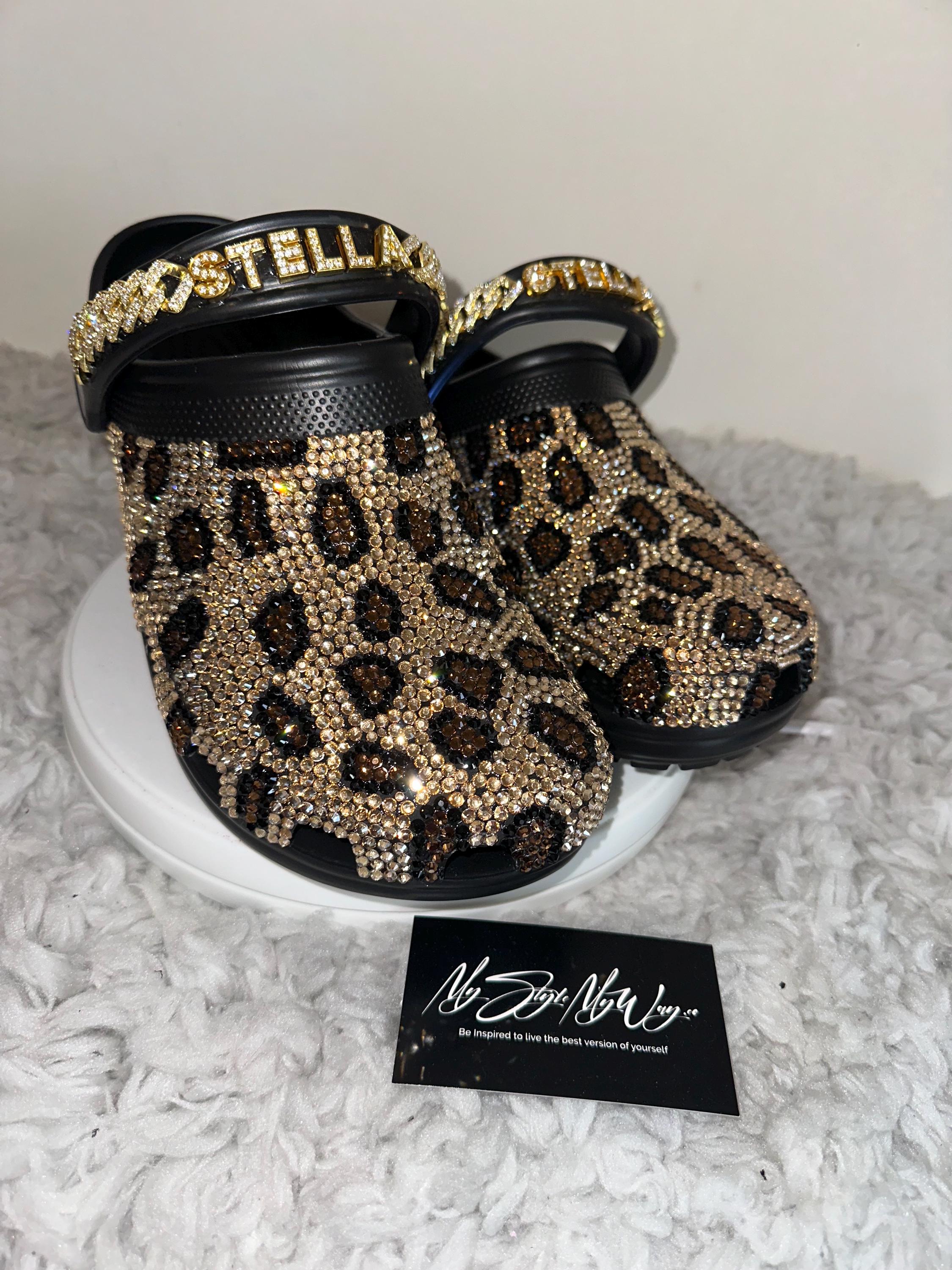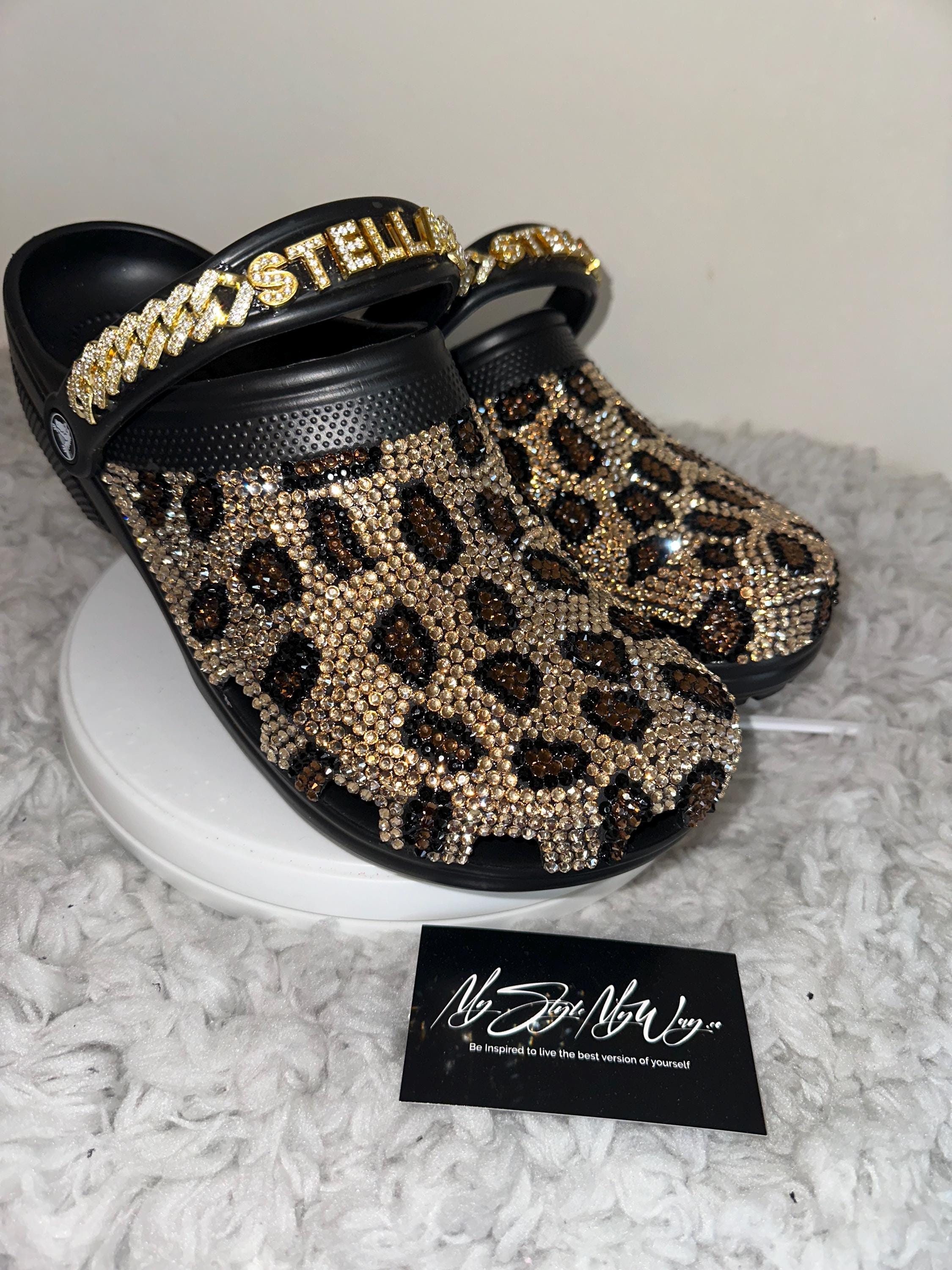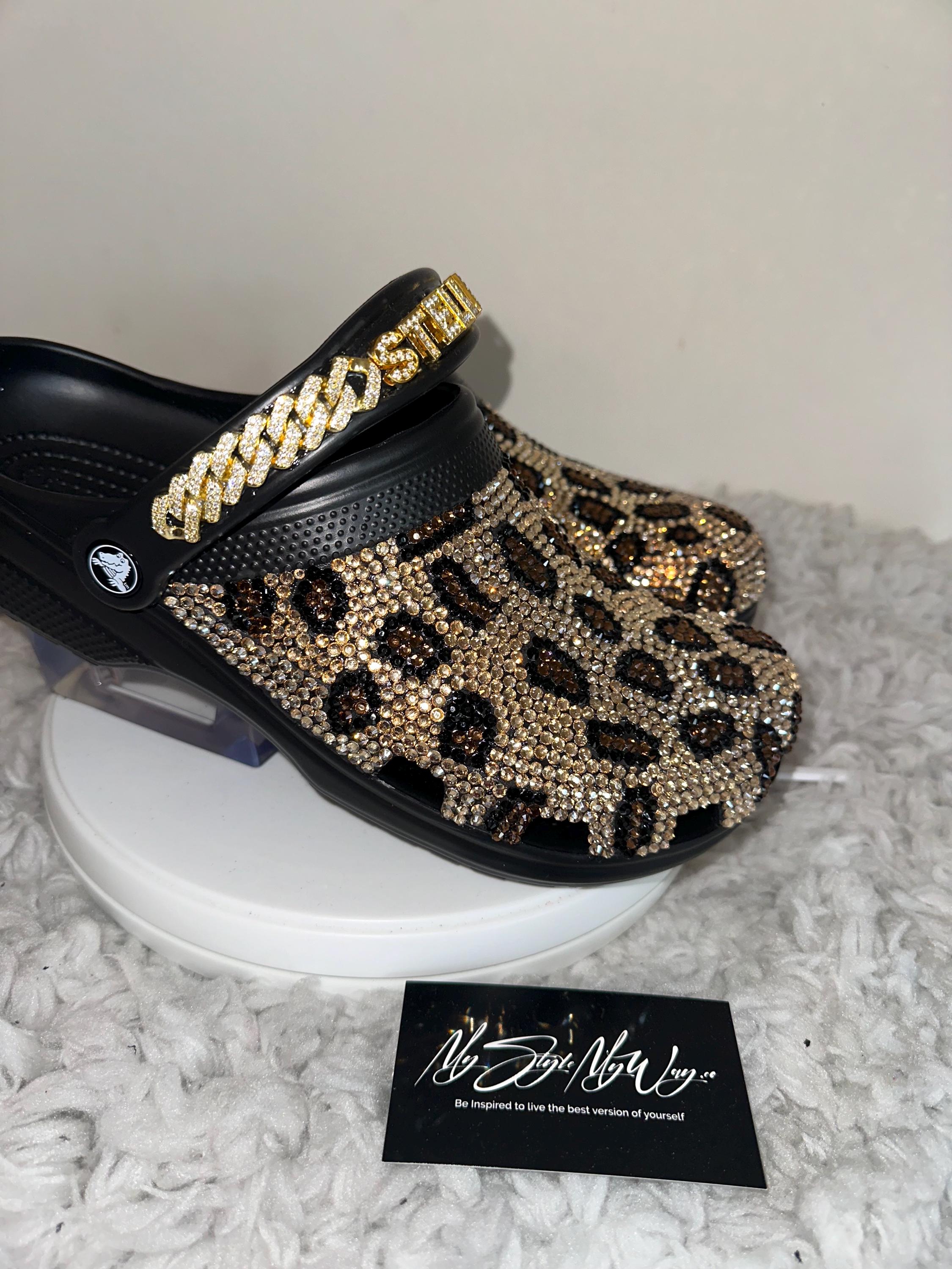 My Handmade Personalized Cheetah Rhinestone Custom Clogs for My Style | Birthday Gifts For her | Custom Bling Shoes