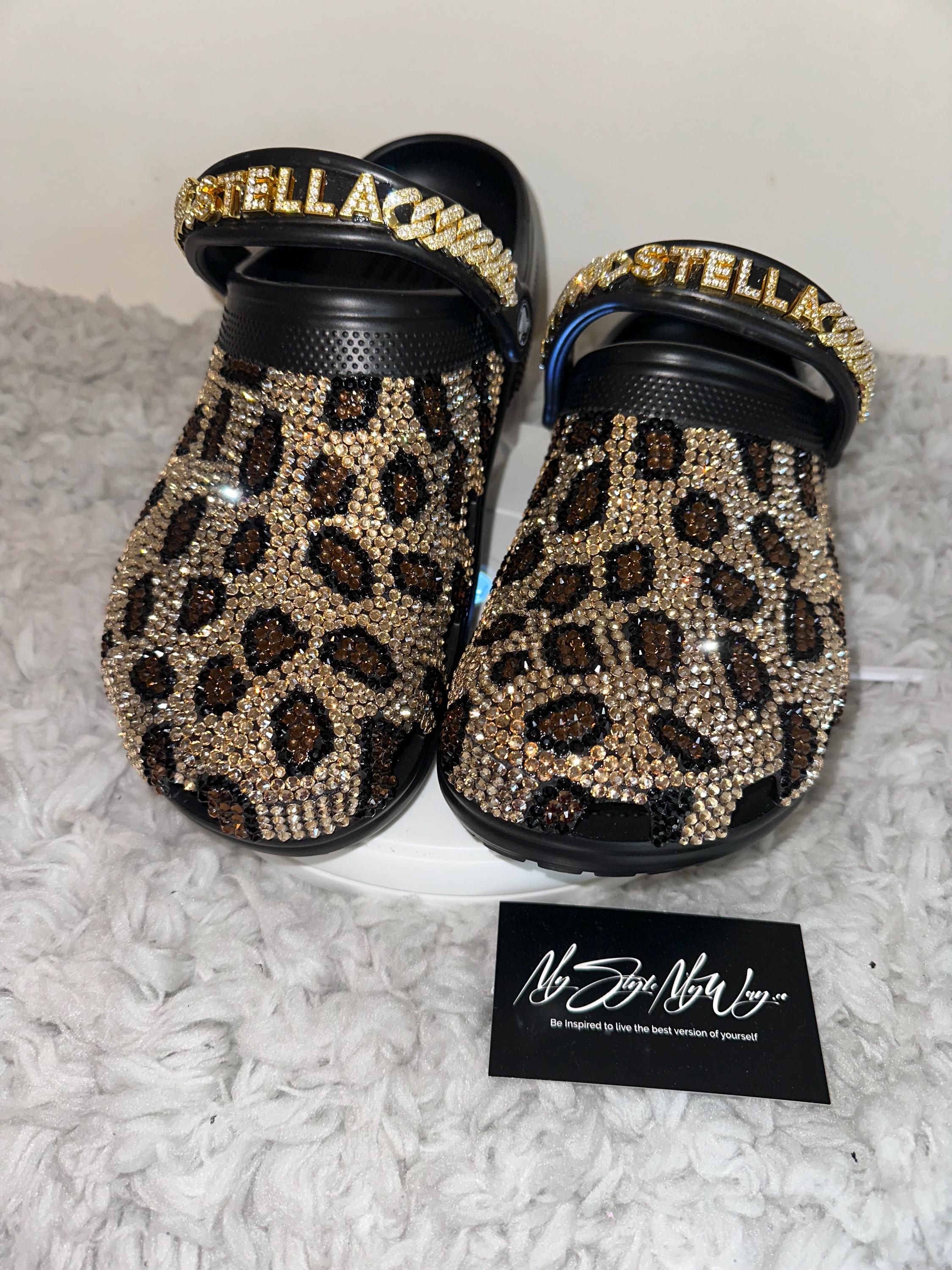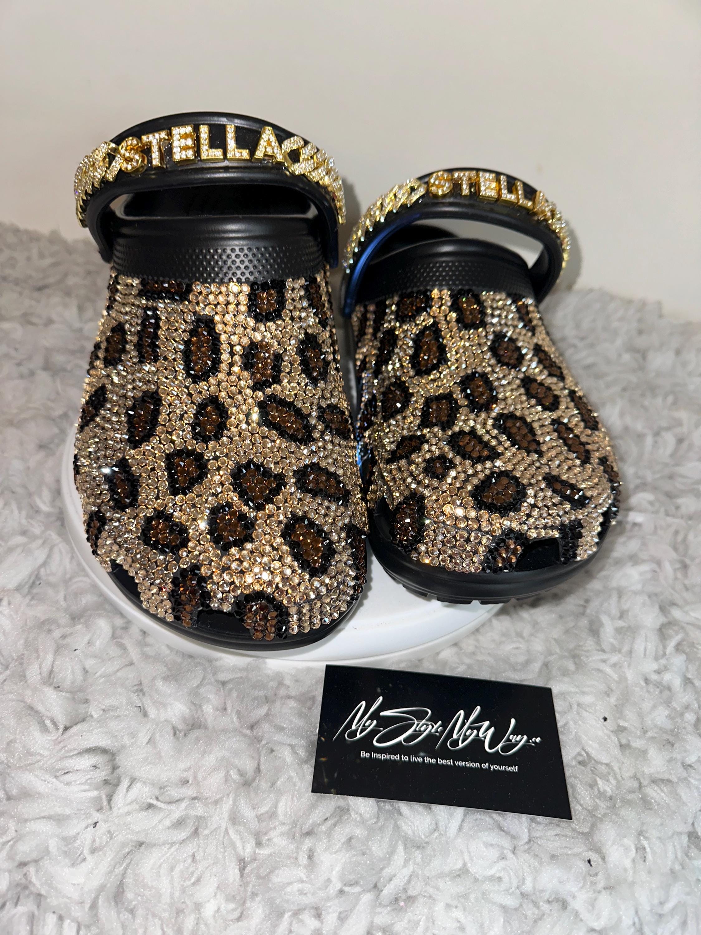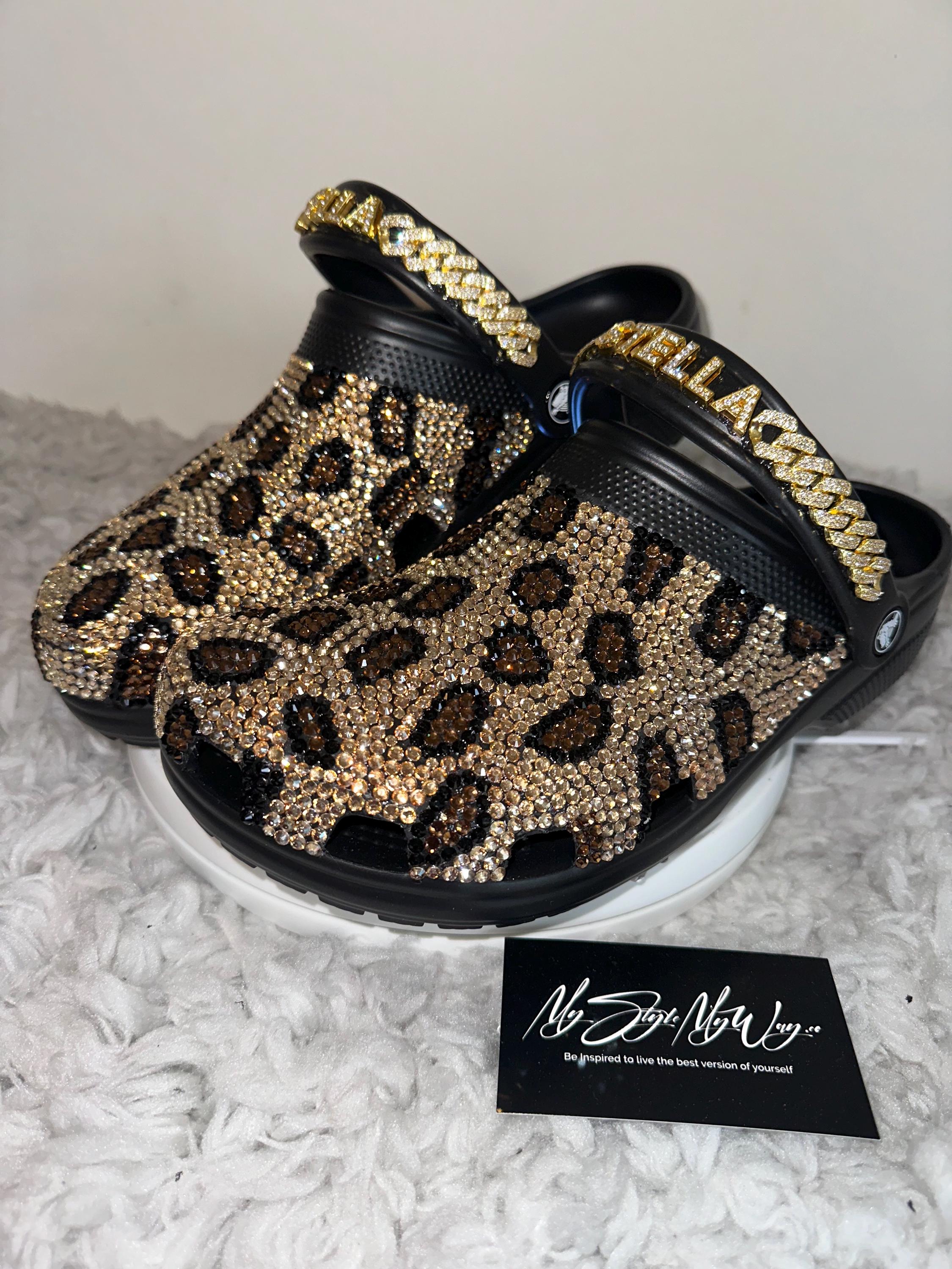 My Handmade Personalized Cheetah Rhinestone Custom Clogs for My Style | Birthday Gifts For her | Custom Bling Shoes