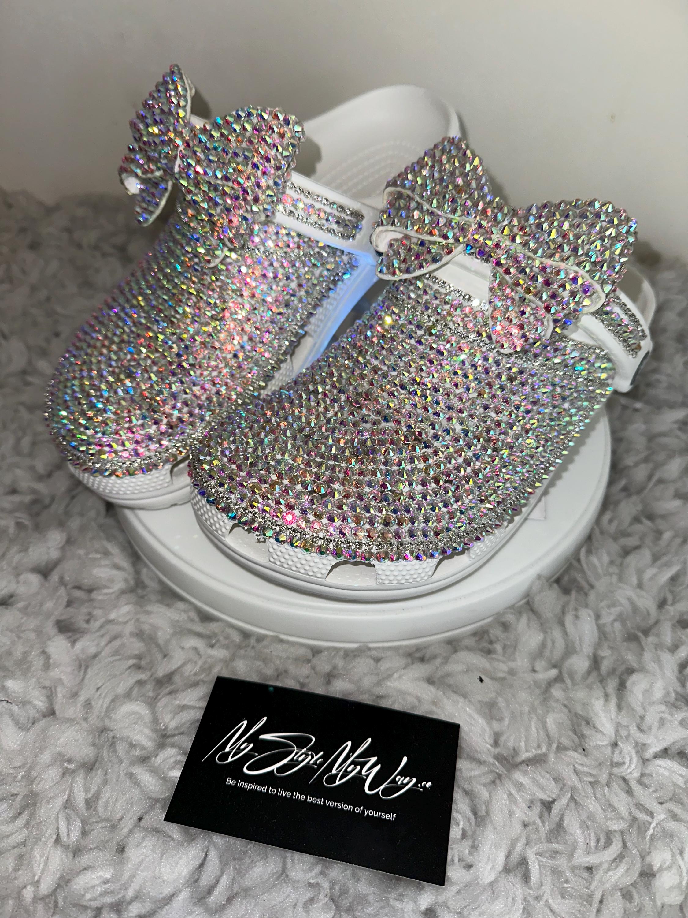 My Handmade Crystal Rhinestone Bow Custom Clogs for My Style | Birthday Gifts For her | Anniversary Gifts| Push Gifts | Custom Bling Shoes